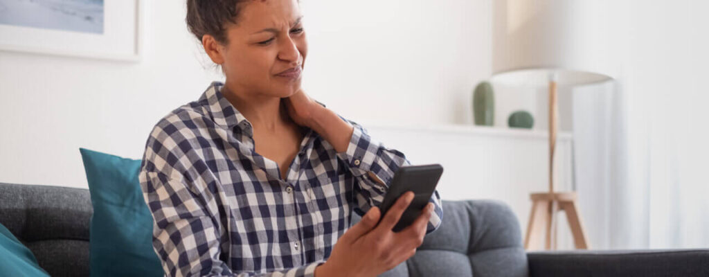 Sitting hunched over can cause excess stress and can eventually lead to damage of your spinal discs, muscles, joints and the nerves and blood vessels traveling through your spine.